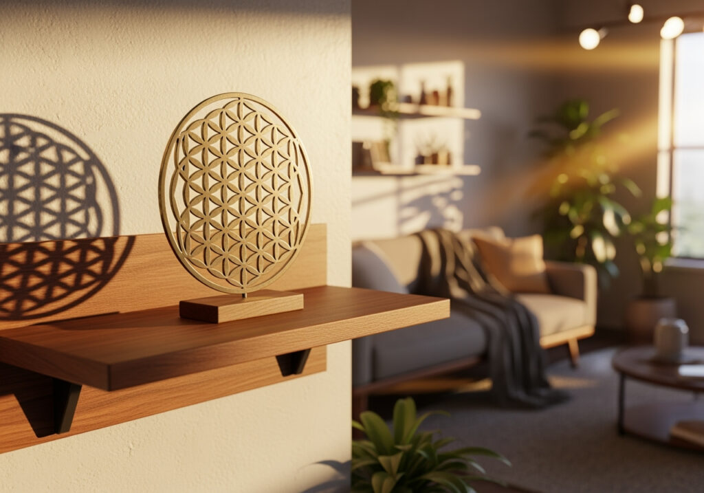 Viele Nutzer:innen beginnen mit etwas Kleinem, etwa einem Untersetzer-Set mit Blume des Lebens am Arbeitsplatz. Das Muster wird so täglich „im Vorbeigehen“ wahrgenommen, ohne den Raum zu überladen. Wer mag, ergänzt später einen schlichten Anhänger als persönliche Erinnerung an Ausgleich – ganz ohne Heilsversprechen.